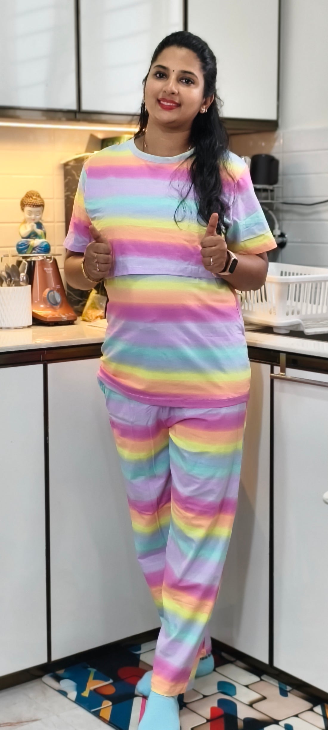 RAINBOW BLOOM | ZIPLESS MATERNITY TOP & PANT SET | LOUNGE & NIGHTWEAR Designed for...