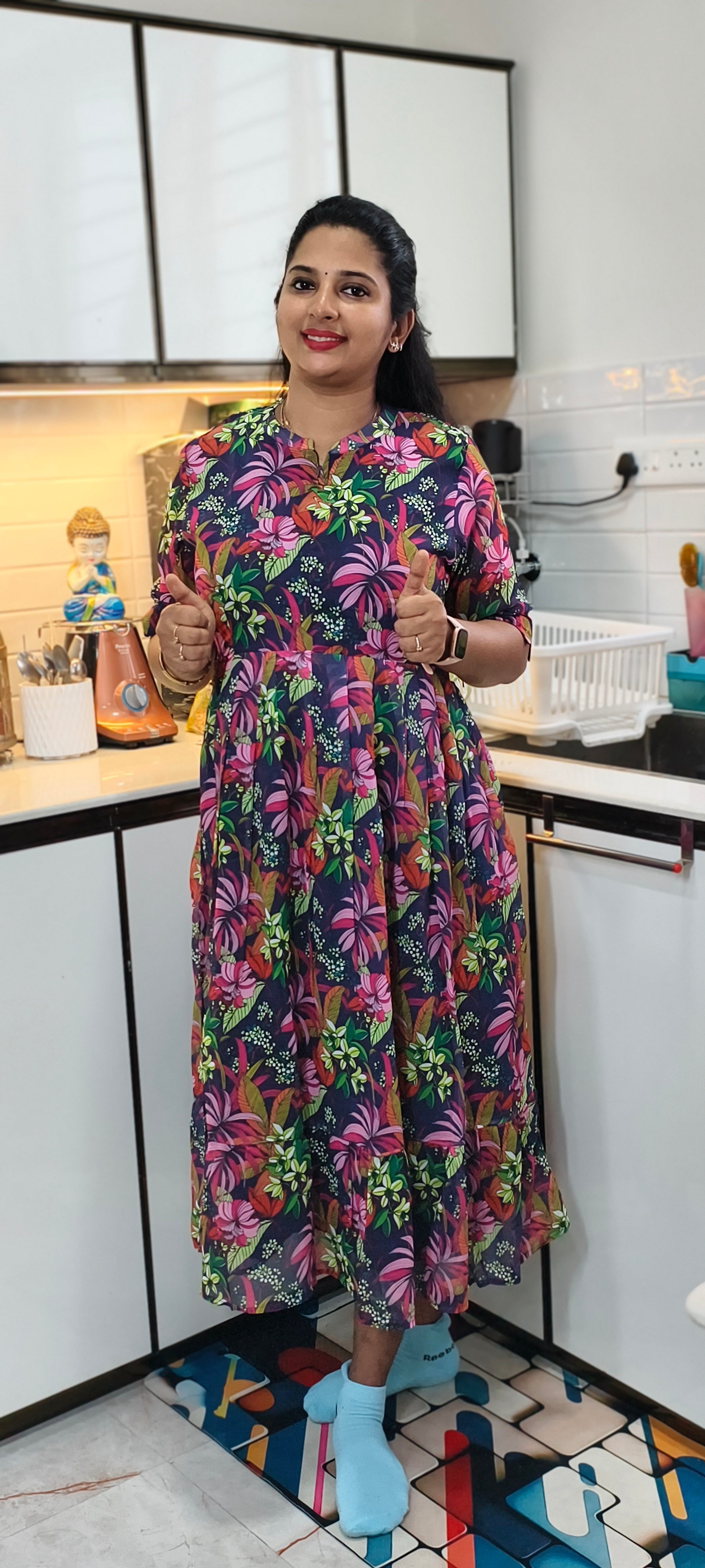 Step into graceful style with our Georgette Digital Print Maxi, thoughtfully designed for the modern woman. Crafted from premium georgette fabric with vibrant digital prints, this maxi is lightweight, breathable, and flowy – perfect for all-day wear.